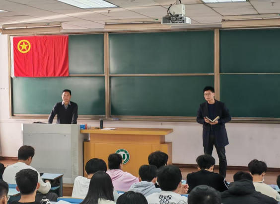 On November 22, the School carried out a theme class of "Keeping in Mind the Historical Responsibility and Striving to Be a Good Youth in the New Era" in Classroom 401 of Sanjiang Building. Mr. Chai Shungen, executive deputy director of the university cares for the next generation working committee, was invited to give a lecture, and all the students of the 78th Youth League participated. The group class was presided over by Mr. Sha Mengmeng, deputy secretary of the Youth League Committee of the school.