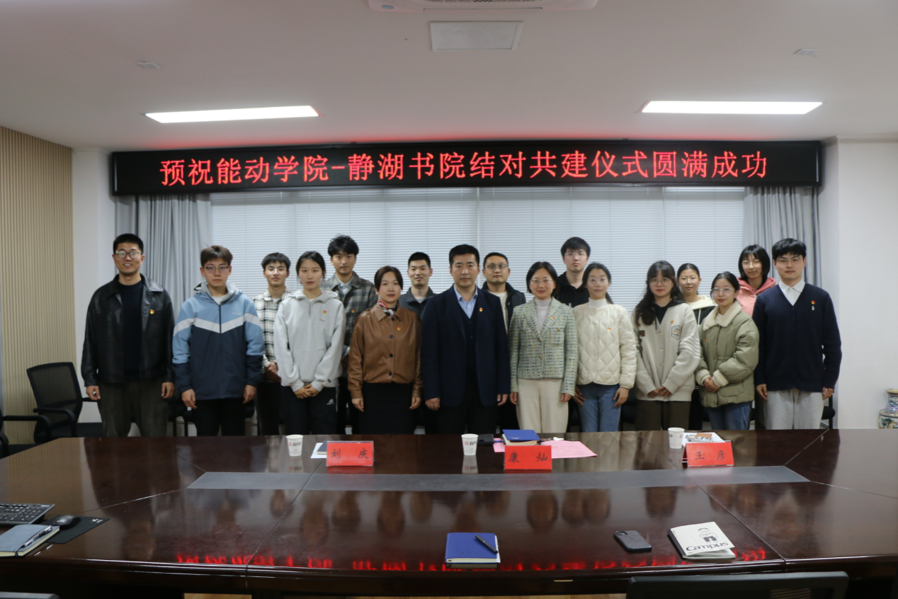 In order to jointly promote the comprehensive construction and development of the "one-stop" community, on March 25, the School and Jinghu Academy held a twinning ceremony in the first conference room of the School. Kang Can, Secretary of the Party Committee of the School, Wang Yan, Secretary of the General Party Branch of Jinghu College, Liu Qing, Deputy Secretary of the Party Committee of the School, and representatives of teachers and students attended the event.