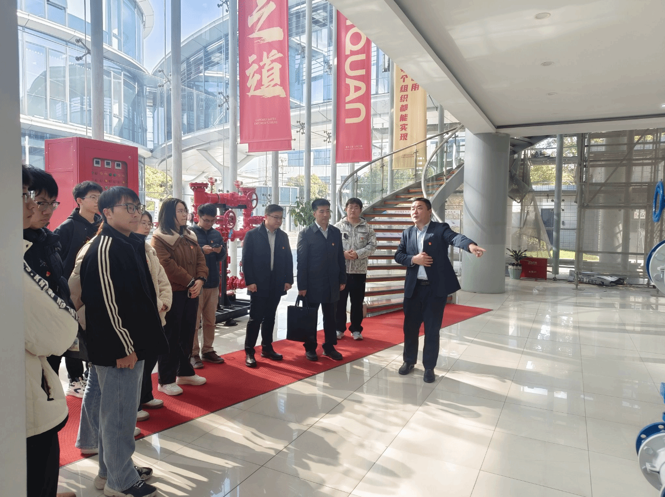 During the exchange session, both parties engaged in discussions on topics such as national strength initiatives, collaborative innovation, and artificial intelligence, as well as the development of outstanding engineers. The college team has formulated specific collaboration plans for curriculum development and project-based teaching for undergraduates. Subsequently, at Shanghai Kaiquan Pump Technology. Under the leadership of Deputy Director Shi Liang, both parties jointly visited the company's product exhibition hall, intelligent workshop, and smart operation and maintenance system, gaining an intuitive understanding depends on the company's technological strength and development vitality. This joint Party building initiative marks a new phase in the collaboration between both parties. Moving forward, they will continue to leverage the synergy of joint Party building efforts and closely to address the nation's major needs, we will deepen cooperation in talent cultivation and technological breakthroughs, leveraging Party-building to lead the high-quality development of industry-education collaboration, contribute greater strength to serving national strategies.